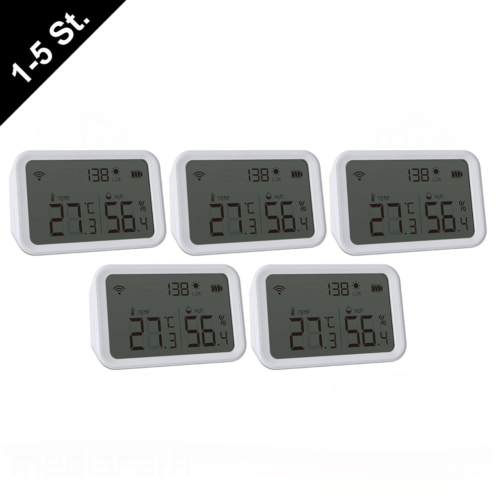 Einfache Installation und Benutzung: Du kannst den Sensor erfolgreich an der Wand montieren oder auf jeder ebenen Fläche platzieren. Die LED-Anzeige zeigt dir den Betrieb des Geräts an, das zuverlässig sowohl tagsüber als auch nachts funktioniert. Die einfache Konfiguration mit der Tuya Smart App erleichtert deine Verwendung. Darüber hinaus liefert das leicht lesbare Display des Geräts Echtzeitinformationen über Temperatur, Luftfeuchtigkeit und Lichtpegel.