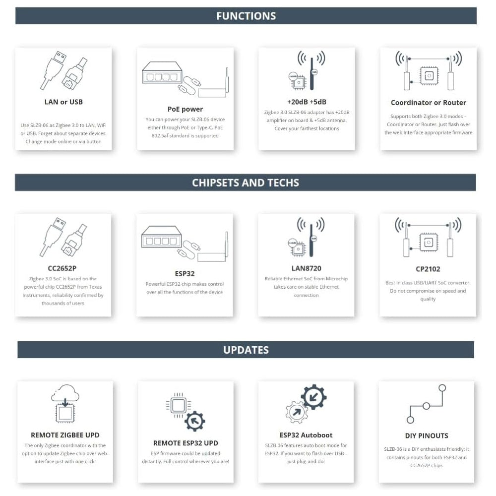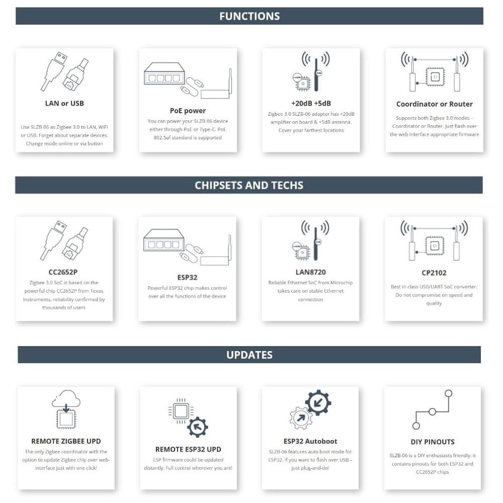 SMLIGHT SLZB-06 Zigbee LAN PoE USB Wi-Fi Adapter Zigbee2MQTT ZHA Thread CC2652P