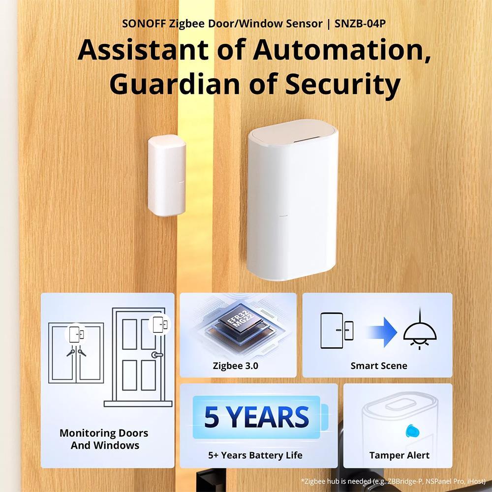 Außerdem integriert sich der SNZB-04P nahtlos in Zigbee-Hubs, die das Zigbee-3.0-Protokoll nutzen, wie SONOFF NSPanel Pro, SONOFF iHost, SONOFF ZB Bridge Pro, SONOFF ZBDongle-E, SONOFF ZBDongle-P und Echo Plus der 2. Generation.