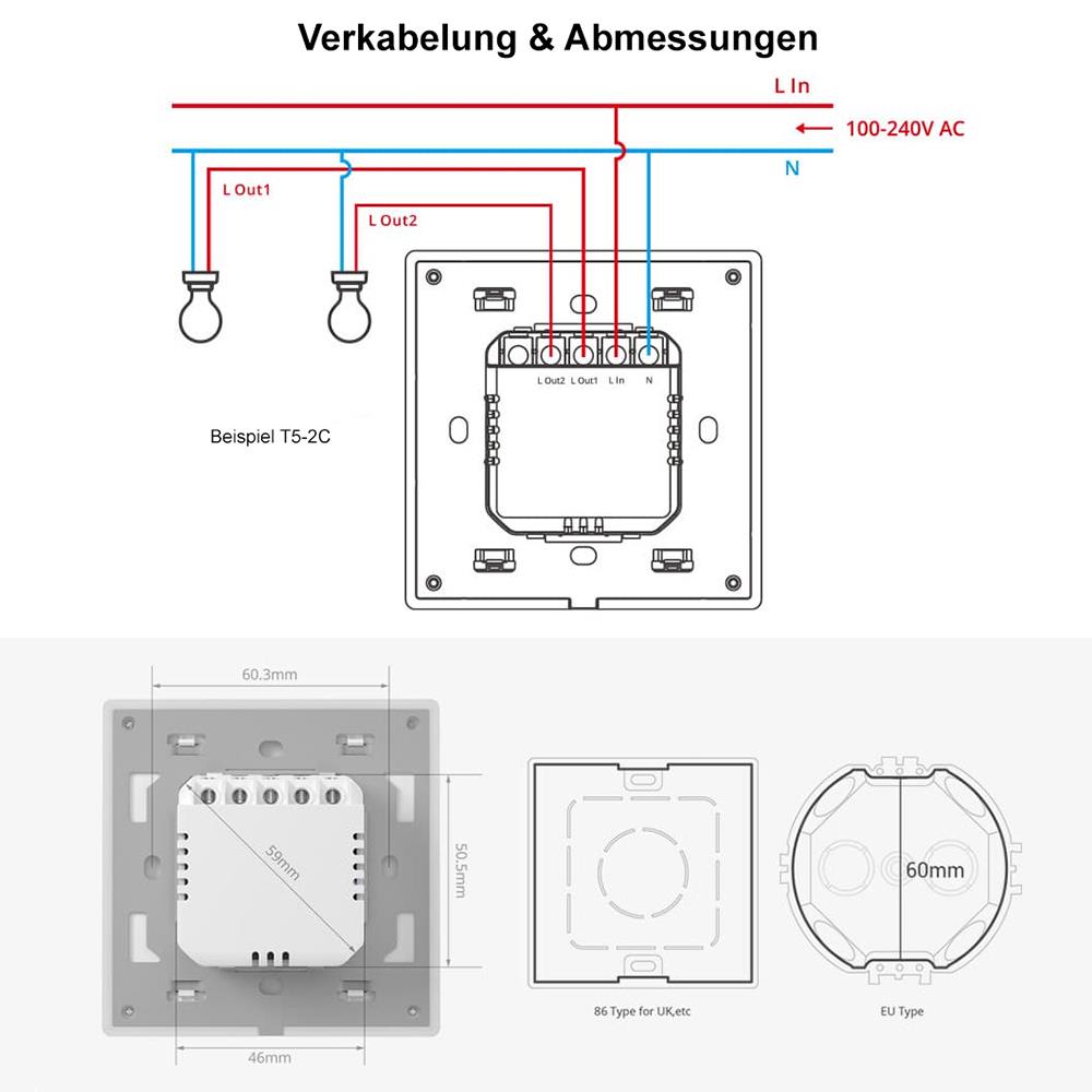 Sonoff TX Ultimate T5 EU 2C 2-Kanal Smart WiFi Wand Touch Schalter Tasmota 15