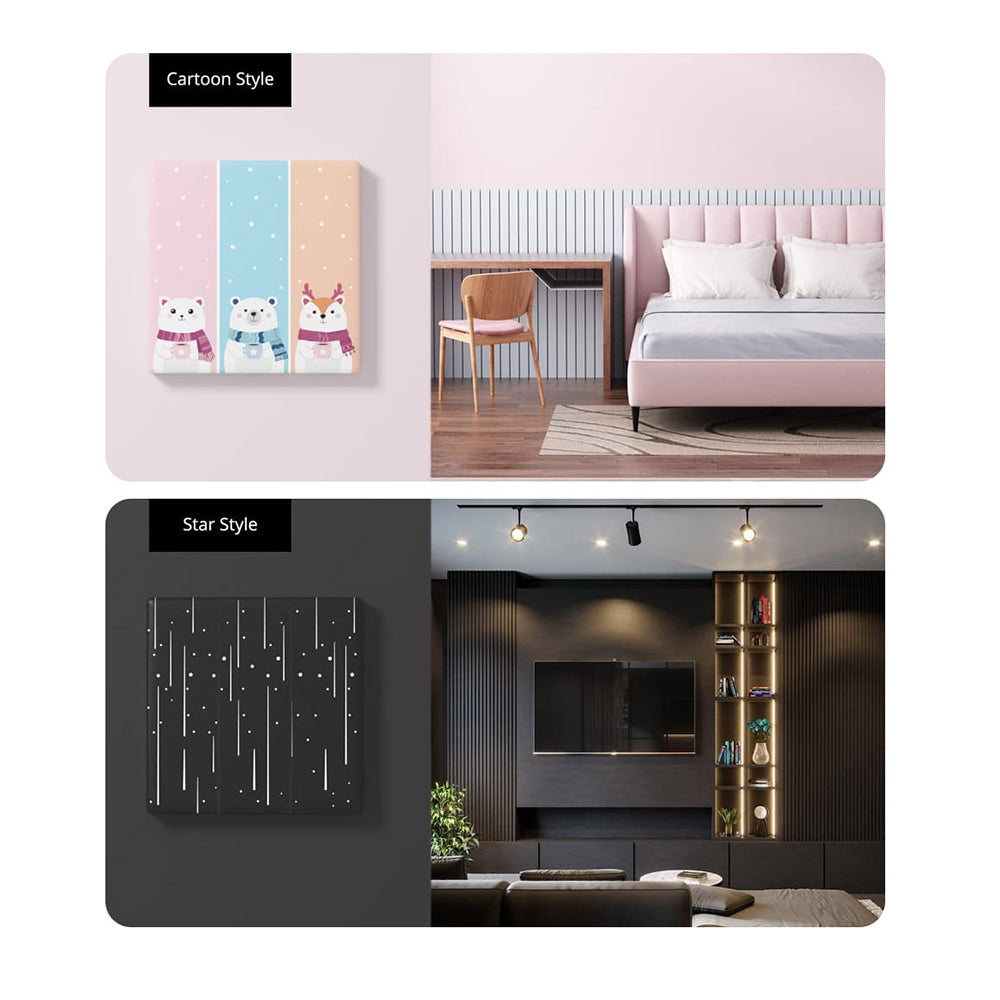 Austauschbare Schaltabdeckung - Die Abdeckung von TX Ultimate kann ausgetauscht werden. Es gibt eine Sternen- und eine Cartoon-Stil-Option. Je nach unterschiedlichem Dekorationsstil kannst du in Betracht ziehen, weitere Panels zu erwerben.