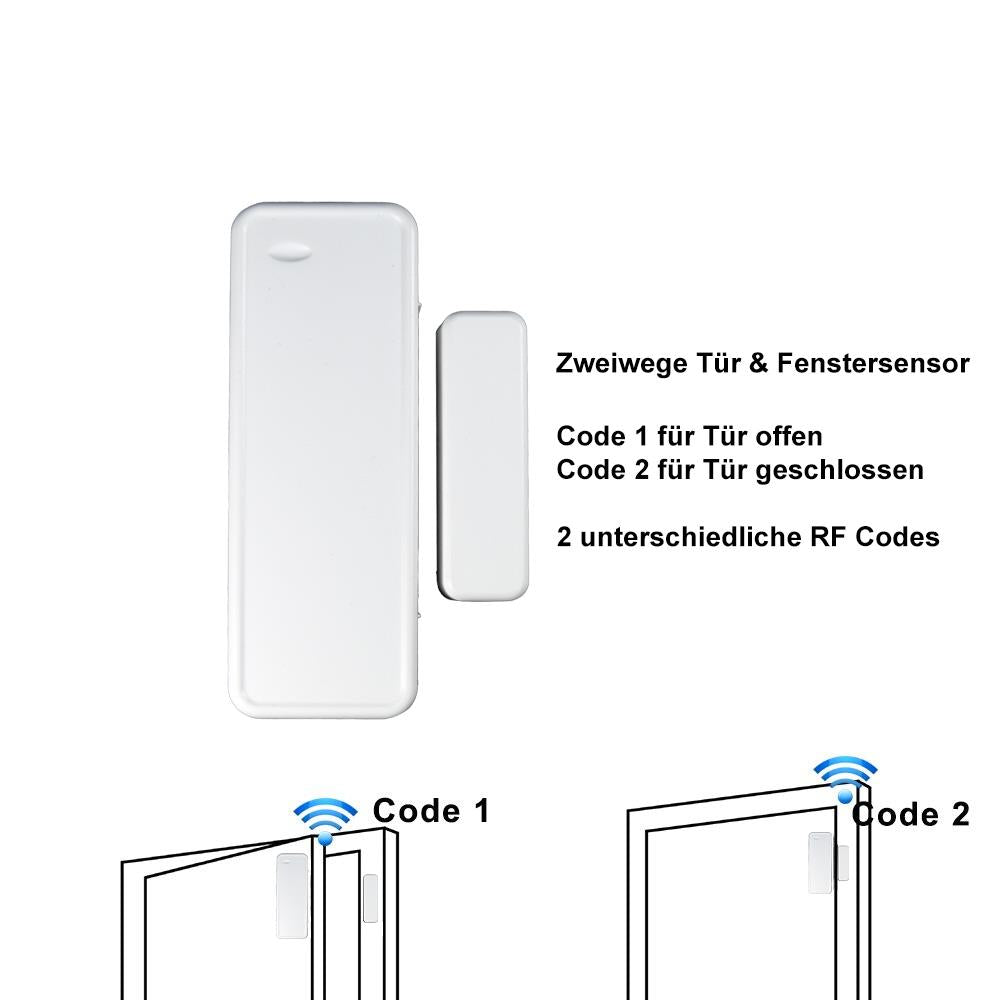 Diese Zwei-Wege-Türsensor sendet zwei unterschiedliche Codes. Status Tür/Fenster offen oder geschlossen.
